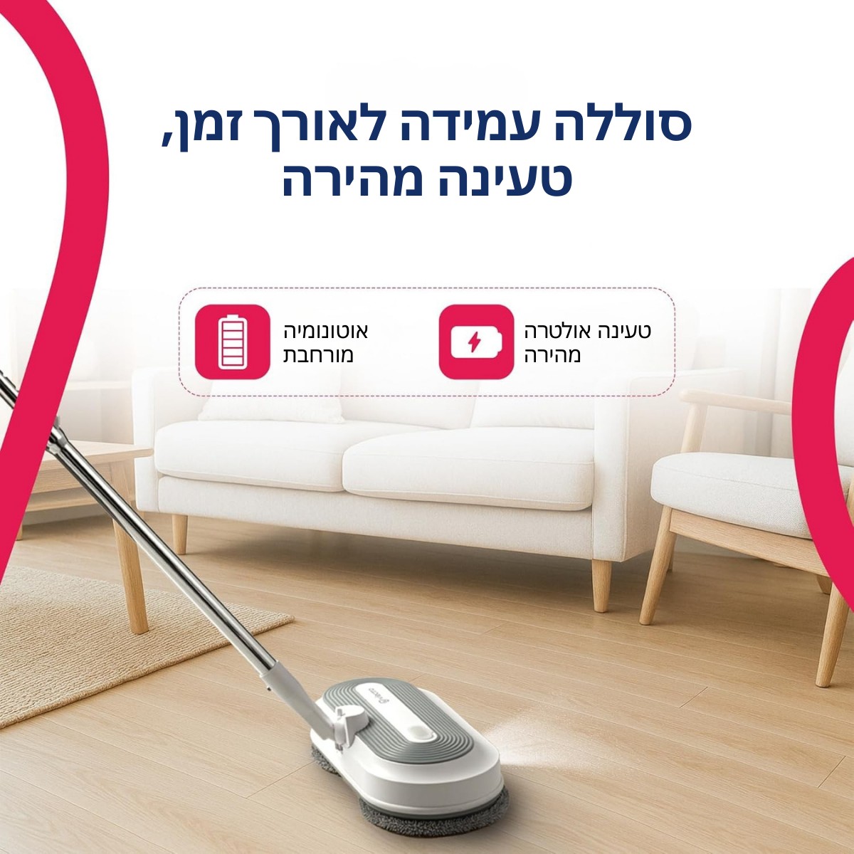 המגב החשמלי המסתובב האלחוטי מעניק לכם ניקוי עמוק ויסודי בלחיצת כפתור, עם חופש תנועה מלא וללא צורך בכבלים.
