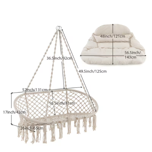 ממדים של כיסא תלוי: 131 × 65 × 42 ס"מ (אורך × רוחב × גובה)