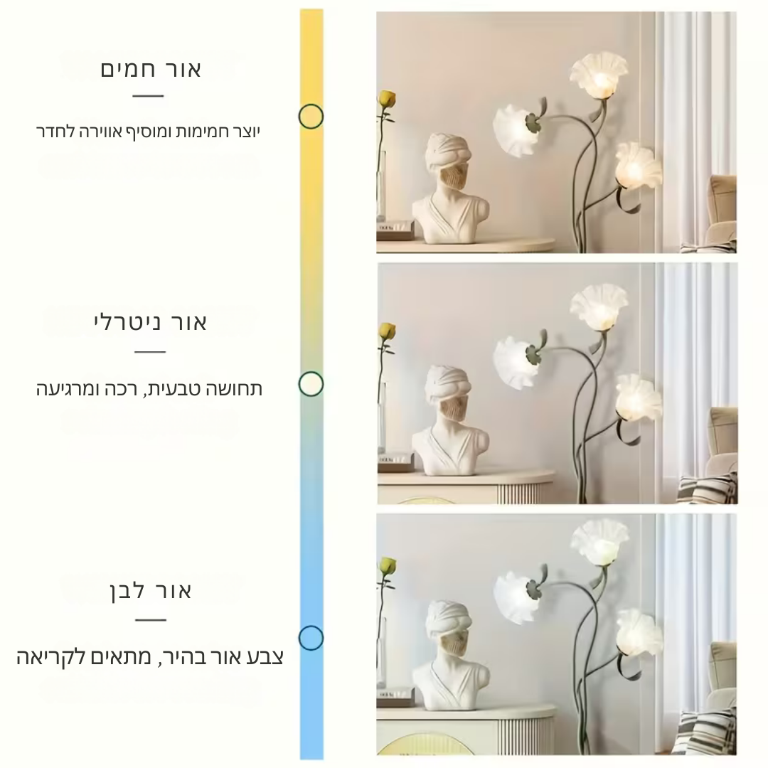 ™Lumora | מנורת רצפה פרח מודרנית – זרוע גמישה, 3 מצבי תאורה