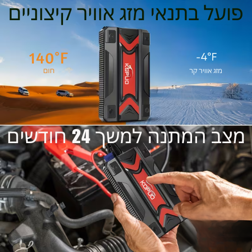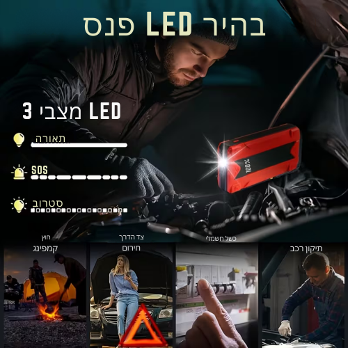™Voltora | סטארטר נייד לרכב ומטען USB, תאורת LED, תצוגת סוללה דיגיטלית