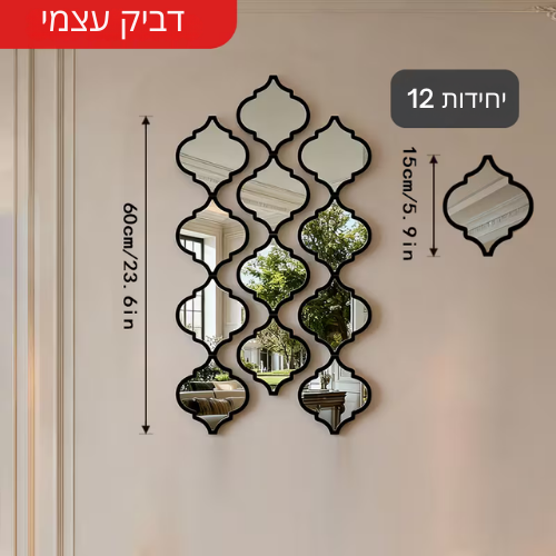 תכונות: מראה גדולה בסגנון מרוקאי עם מסגרת שחורה דקורטיבית